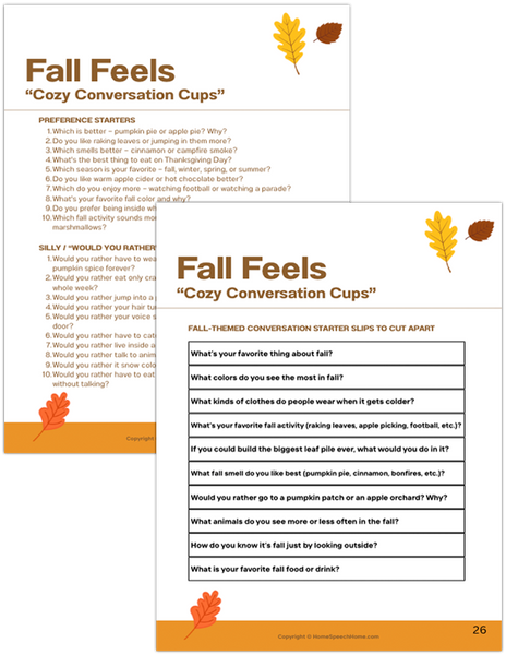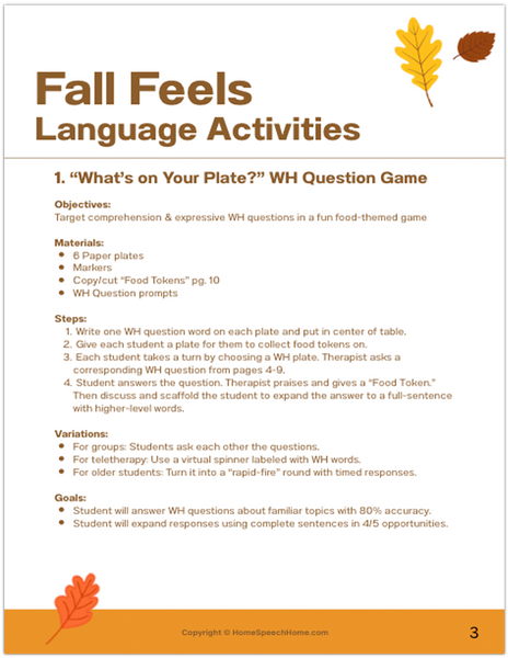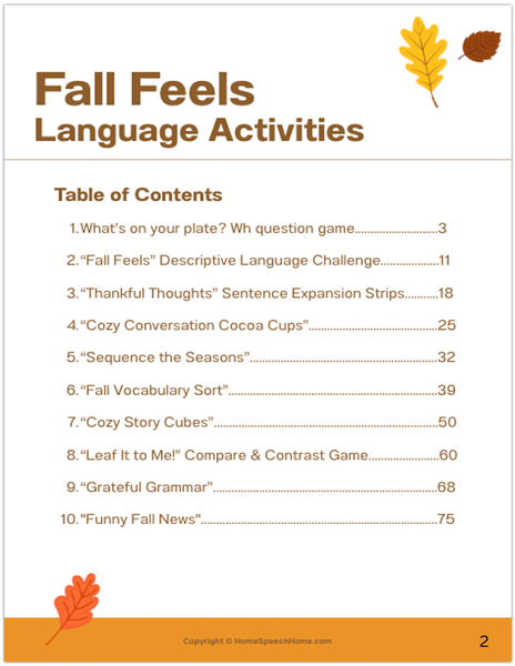 Bring cozy, fall-themed fun into your speech sessions with the Fall Feels Language Pack — an 78-page, no-prep PDF packed with engaging, evidence-based language activities designed for K–6 mixed groups.