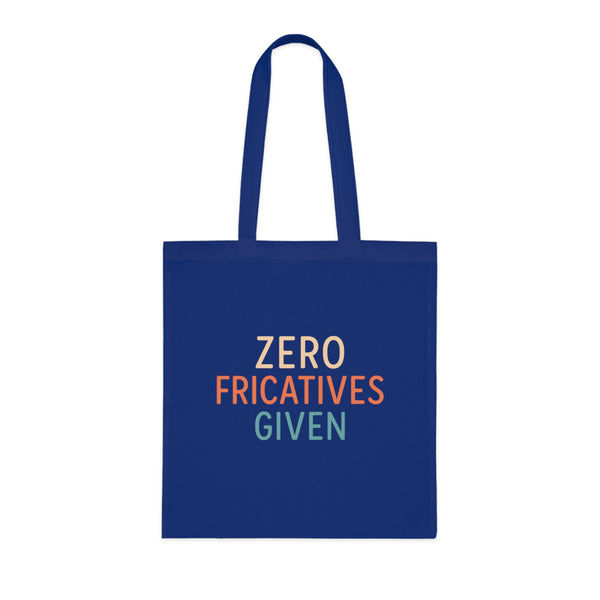 Lightweight, everyday tote with a dry, linguistic wink. This 100% cotton bag carries groceries, notebooks, or a weekend haul while announcing your love of language with a soft, three-color print that reads “ZERO FRICATIVES GIVEN.” The fabric’s extra-light feel keeps the tote easy to fold into a purse or pocket. Reinforced handle stitching and flat-corner construction give it clean lines and dependable strength, and the double-sided print option lets you show the design front and back. Choose a vibrant color to match your mood or stick with classic white for a subtle, bookish look. It’s grown-up, REACH-certified, and made to move with you from campus to the coffee shop to the market.